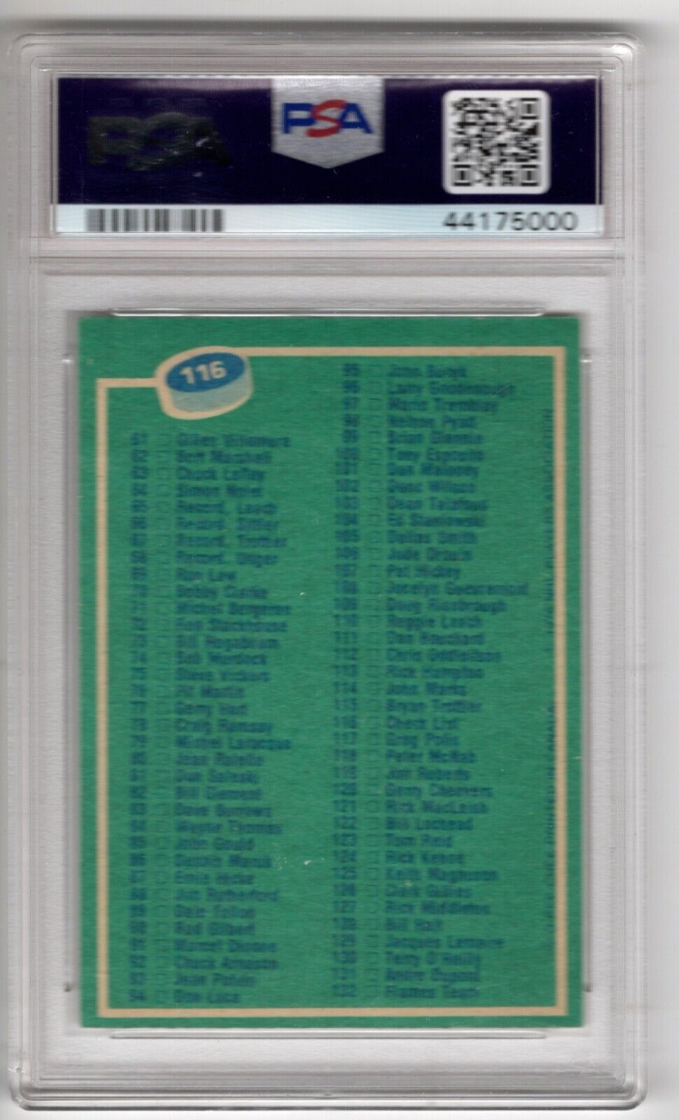 1976/77 O-Pee-Chee OPC Hockey #116 Checklist Card 1-132 PSA 8