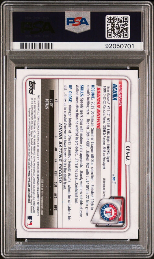 2020 1st Bowman Baseball Draft Chrome Prospect Auto Luisangel Acuna RC PSA 10