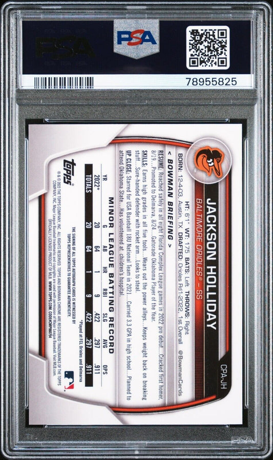 2023 Bowman Baseball Chrome Prospect Auto Jackson Holliday PSA 9