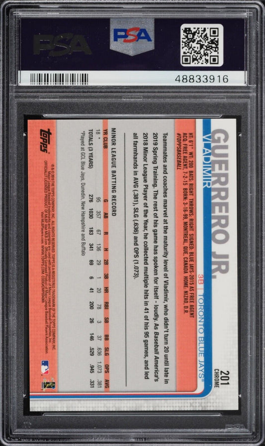 2019 Topps Chrome Baseball #201 Vladimir Guerrero Jr. Rookie Card RC PSA 10