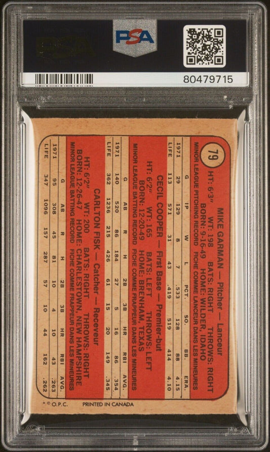 1972 O-Pee-Chee OPC Baseball #79 Red Sox Rookies Garman/Cooper/Fisk PSA 7 RC