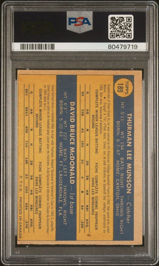 1970 O-Pee-Chee OPC Baseball #189 Yankees Rookies Munson/McDonald PSA 4 RC