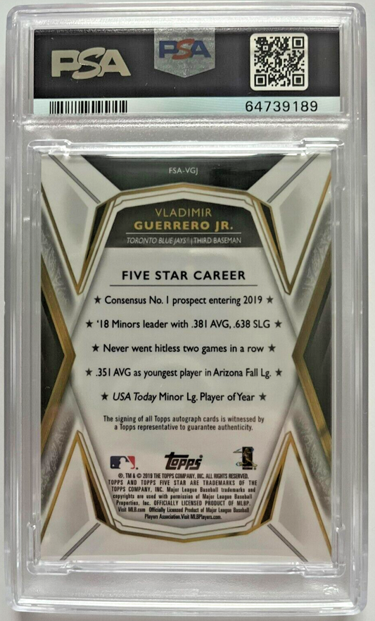 2019 Topps Five Star Baseball Auto Gold 09/10 Vladimir Guerrero Jr RC PSA 9